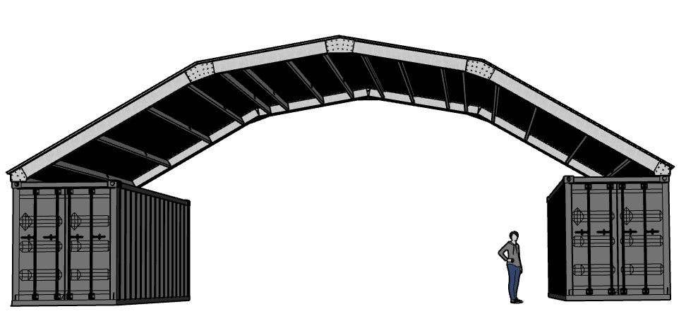 11m roof offering 10.8m clear between the containers. Need the extra floor space? This is the roof for you.